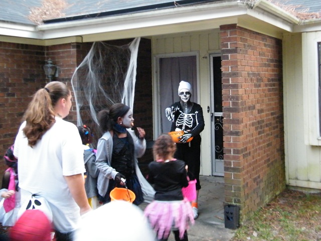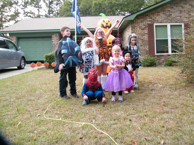 Heute waren wir mit den Enkelkindern und Kindern von Freunden etc. in der Nachbarschaft unterwegs. Zur Stärkung gab es vorherRoastbeef, Chips sowie Donuts und dann ging es los. Die Kinder ganz aufgeregt und wir auch, ist ja unser erstes Halloween in USA.
