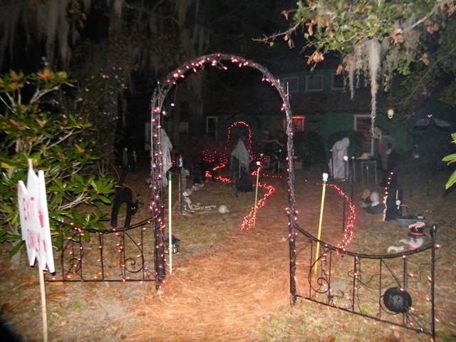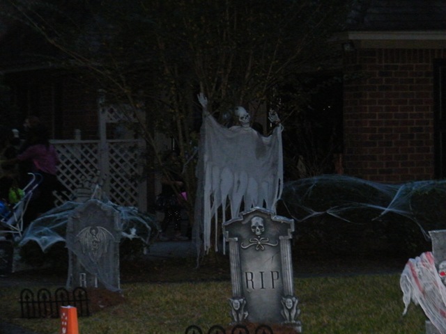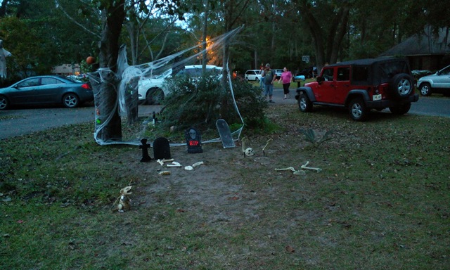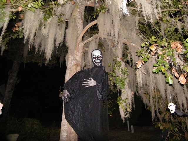 Hier noch ein Foto der Halloween Deko, spätnachmittags da die Nachaufnahmen nicht so gut geworden sind.